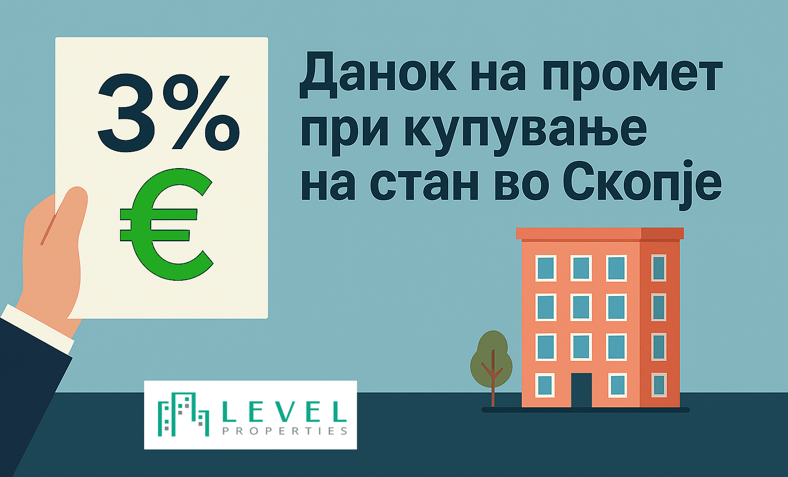 Купувањето на стан во Скопје носи возбудување, но и одредени административни обврски. Еден од нив е данокот на промет на недвижности – еднократен данок од 3% (2%-4%) кој се плаќа при пренос на сопственоста на недвижен имот. Во продолжение, преку јасни чекори и објаснувања, ќе дознаете кој треба да го плати овој данок, колкава е неговата стапка, во кои случаи се избегнува, како и постапката за пријавување и плаќање, поткрепено со официјални извори од Министерството за финансии, Управата за јавни приходи и Град Скопје.