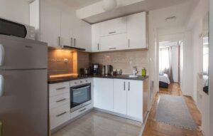 A new and fully furnished apartment of 31m² is available for rent on the 5th floor of a building with an elevator, located in the heart of Debar Maalo near Fitness House. The apartment features a living and dining area, kitchen, one bedroom, and a bathroom. Heating is electric, and the apartment has a south-facing orientation. It is ready for immediate move-in. This is an excellent option for individuals or couples looking for a modern and practical home in one of Skopje’s most sought-after neighborhoods.