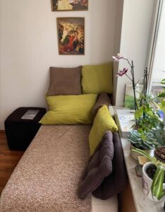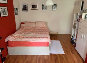 A renovated and fully furnished 35m² apartment is available for rent in Kisela Voda, located on the 2nd floor of a building on Anton Popov Street. The property is in a quiet area near the church Sveta Petka, bus stops, and supermarkets, just a 10-minute walk from the Green Market. The apartment includes a kitchen with access to a balcony, a bedroom, a bathroom, and comes with a basement and a parking space. It is equipped with an inverter air conditioner, full household utensils, bed linens, and towels, making it move-in ready and ideal for a single person or couple seeking a comfortable and practical living space.