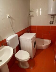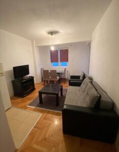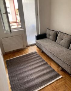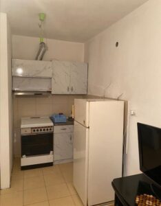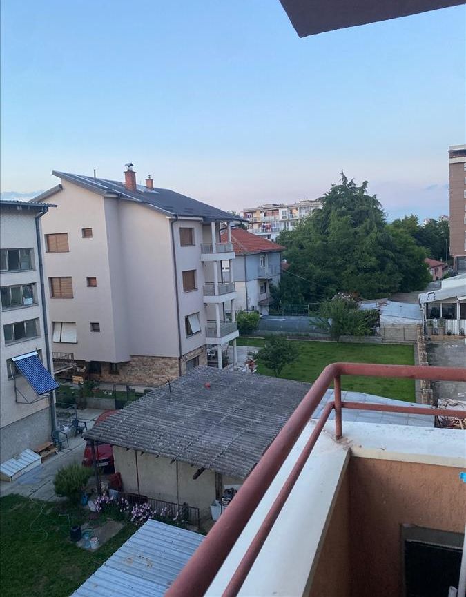 A fully furnished apartment of 37m² is available for rent in Gjorce Petrov, located directly across from the stadium. Situated on the second floor of a building with an elevator, the apartment features one bedroom, a living room with a kitchen, a bathroom, and a balcony facing northwest. Heating is electric, and the building was constructed in 2014. It is ideal for a single person or a couple, with public transportation and essential services nearby.