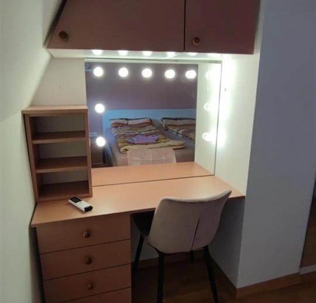 • Bedroom: king-size bed, wardrobe, vanity table with mirror