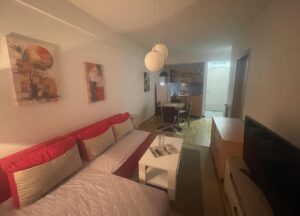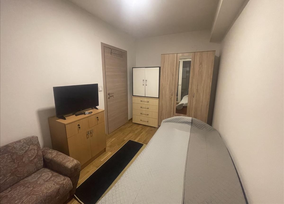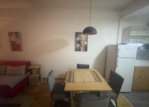 A fully furnished one-bedroom apartment of 40m² is available for rent, situated on the first floor of a modern building constructed in 2019, located in Aerodrom. The apartment includes a living room, kitchen, bathroom, and one balcony facing west, providing plenty of natural light throughout the day. It features central heating and has elevator access. Positioned in a quiet urban area, the building offers easy access to public transport, shops, and other essential amenities.