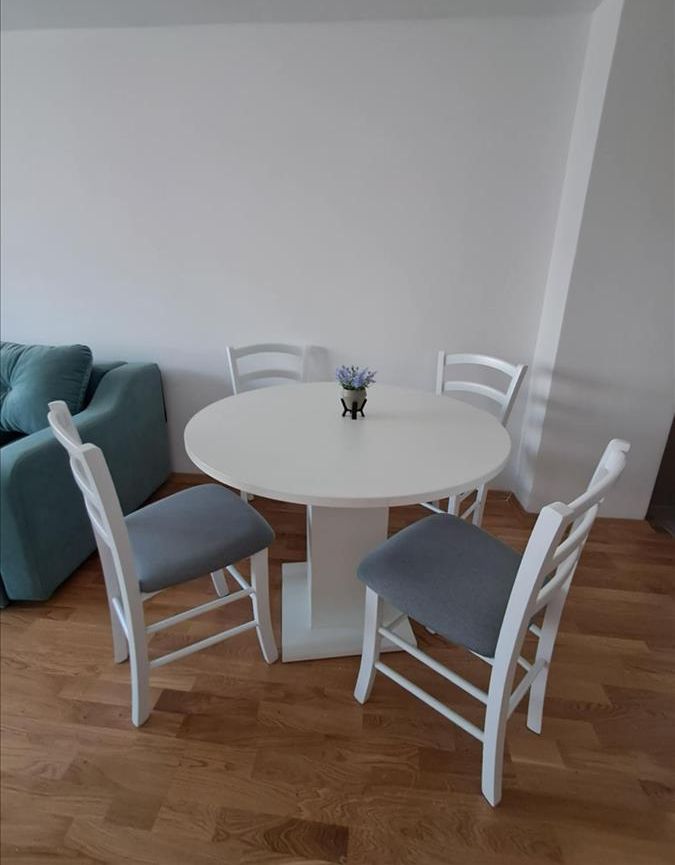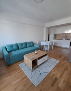 A brand-new, never-before-occupied two-room apartment with an area of 43m² is available for rent in the heart of Centar, in the quiet and attractive neighborhood of Madzir Maalo. Located on the 5th floor of a new building with an elevator, the apartment is fully equipped with new furniture and modern appliances. It features a living room, kitchen with dining area, one bedroom, bathroom, and a balcony with southeast orientation. Perfect for individuals or couples seeking modern urban living with convenient access to all amenities.