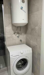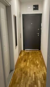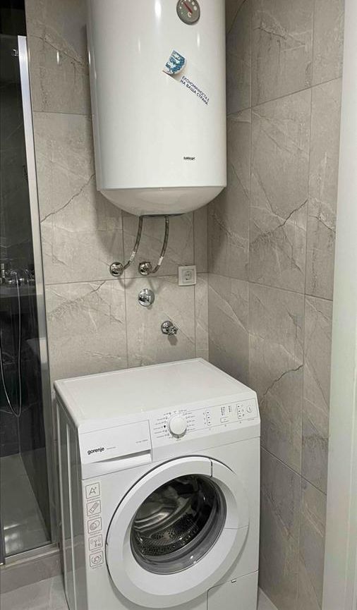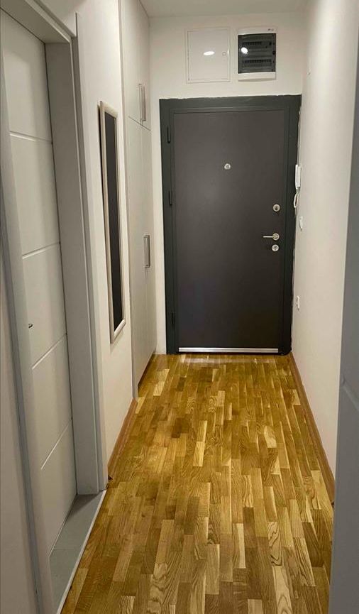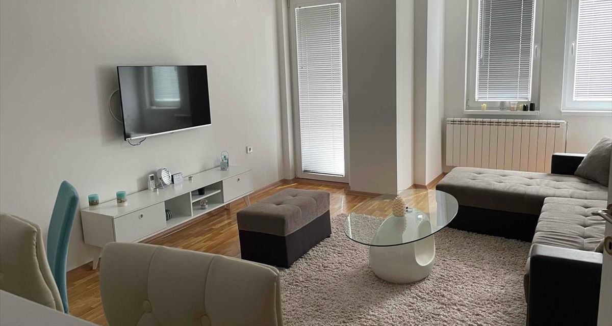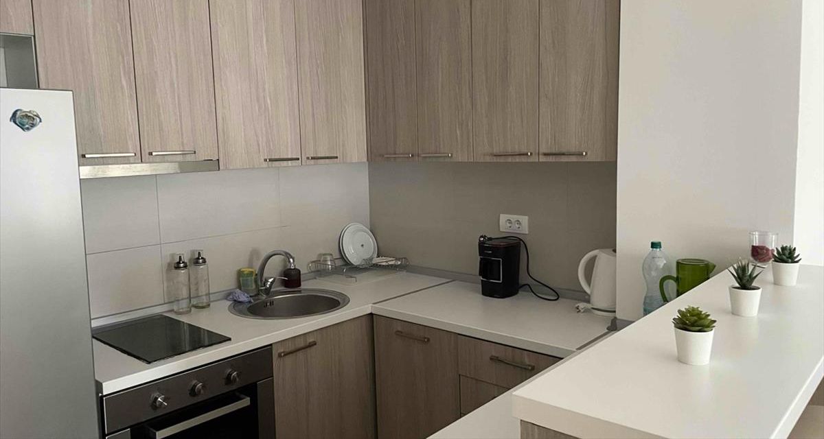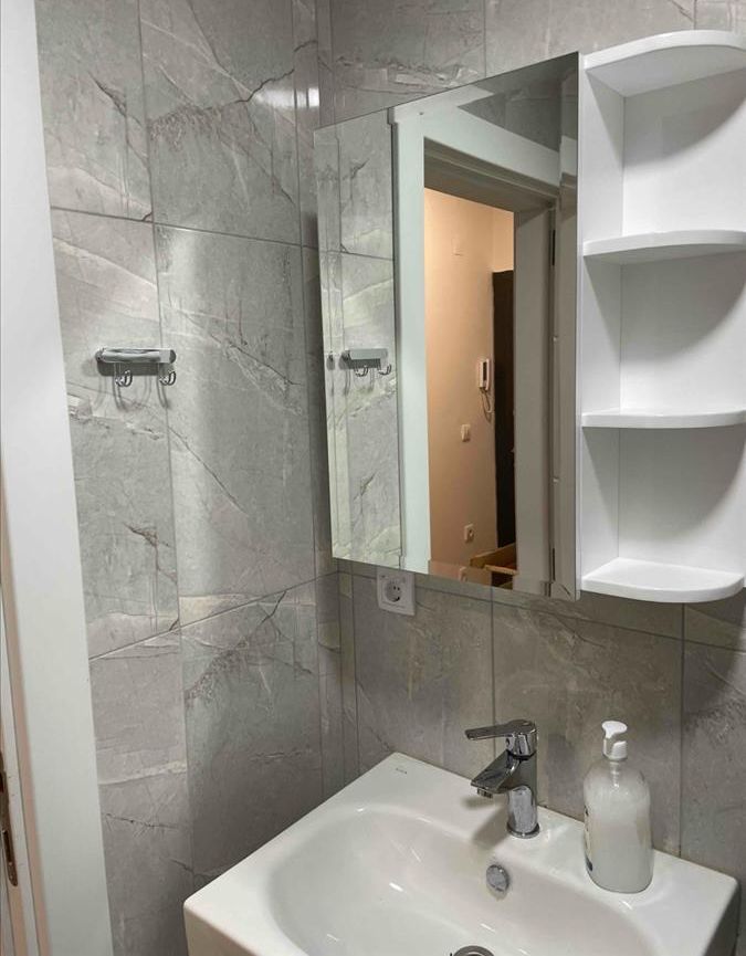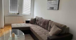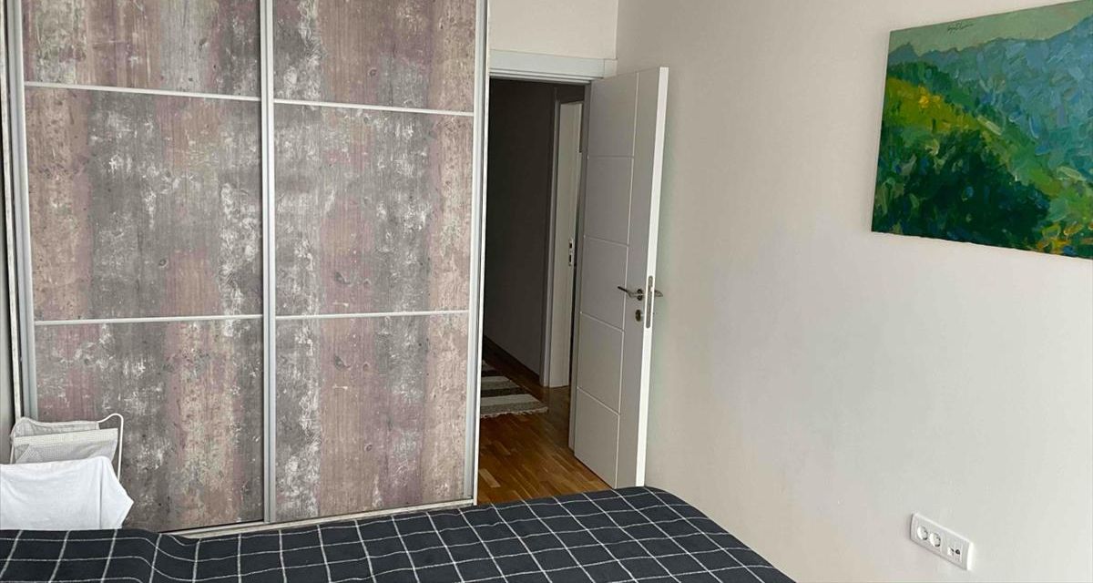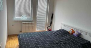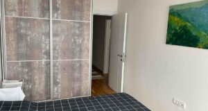 A new, fully furnished two-room apartment of 47m² is available for rent in the Michurin neighborhood of Aerodrom, located on Venjamin Machukoski Street No.1. The apartment is on the 3rd floor of a building with an elevator, built in 2021. It includes a bedroom, a living room with a kitchen equipped with a dishwasher, bathroom, balcony, and air conditioning. Heating is central, and one outdoor parking space is provided. Situated close to the main bus and train station, the apartment is ideal for a single person or couple and is available for long-term rent.