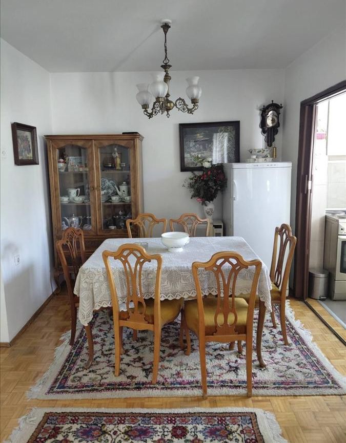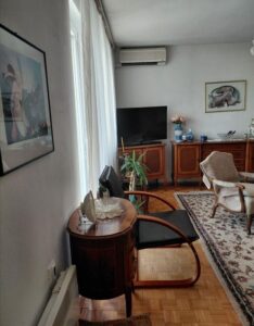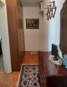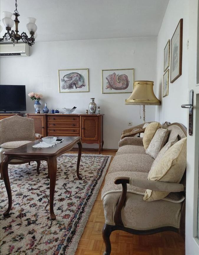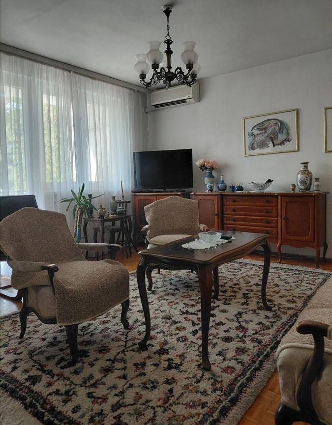 A renovated and fully furnished one-bedroom apartment of 50m² is available for rent in Karposh 2, located near the Drama Theater, Tinex supermarket, and FINKI. The apartment is on the second floor and includes a living room, one bedroom, bathroom, and a terrace with a beautiful view of Vodno. It features central heating, and although the building does not have an elevator, it offers multiple secured parking spots for residents. The location provides excellent connectivity to the city center and a peaceful environment with all necessary amenities nearby.