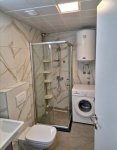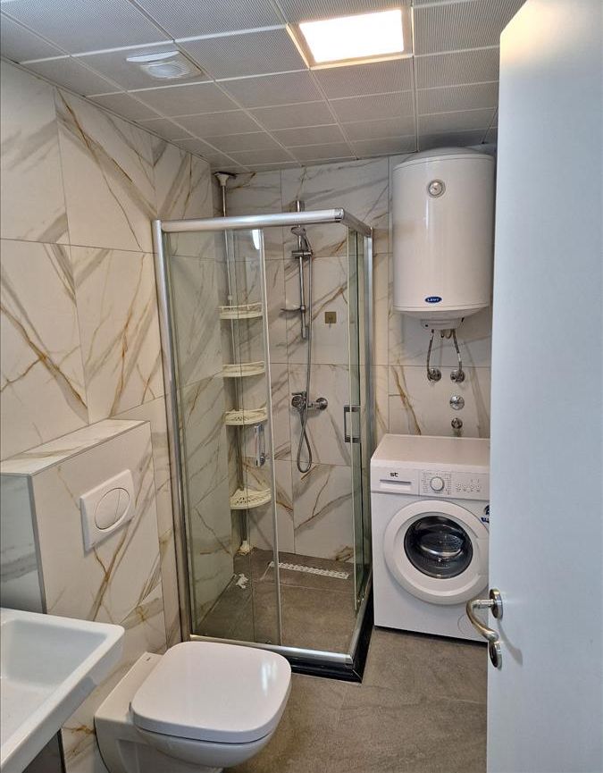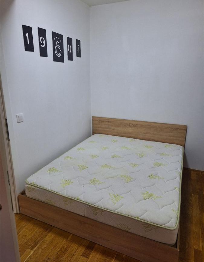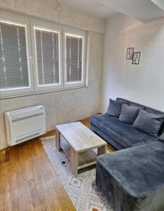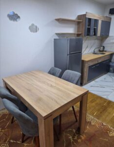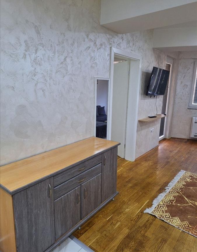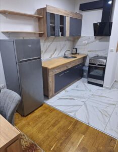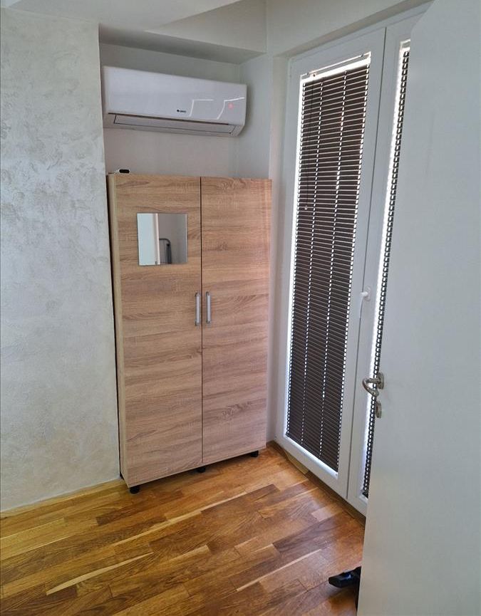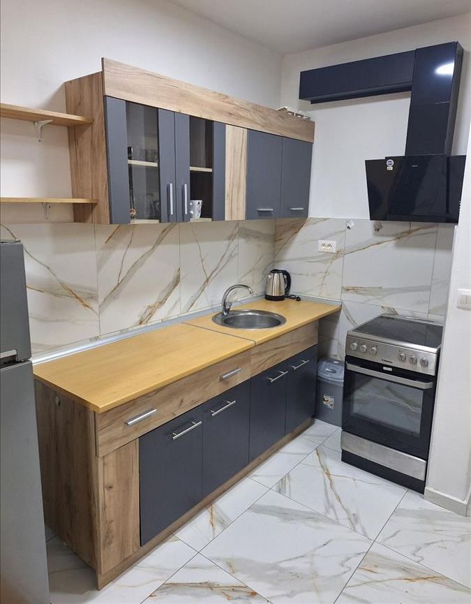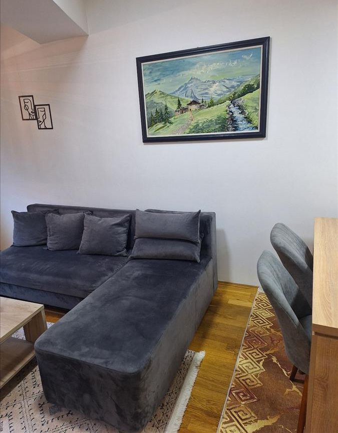 A new, two-room and fully furnished 55 m² apartment is available for rent on the second floor of a modern building with an elevator in Kapishtec, directly opposite the Zebra shopping center and only a few minutes’ walk from Vodnjanska Boulevard, Ramstore Mall and Skopje’s main square. The layout includes a spacious living area with kitchen, a contemporary bathroom and a cozy balcony facing northeast. Efficient heat-pump heating provides year-round comfort, complemented by high-quality interior finishes. Completed in 2023 and refreshed in 2025, the building offers nearby public parking, making this home an ideal choice for residents seeking modern living close to the city center.