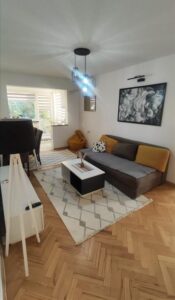 A fully furnished and renovated apartment of 59m² is available for rent on the ground floor in the quiet and desirable neighborhood of Taftalidze. The apartment features a living room with kitchen, one master bedroom, one children’s room, a bathroom, a balcony, and a 10m² basement. Recently renovated in 2025, it is equipped with all necessary appliances and is move-in ready. Heating is provided by central heating and additionally by an inverter air conditioner. With a southwest orientation, the space enjoys plenty of natural light. Ideally located near a school, kindergarten, supermarkets, and City Mall, the apartment is perfect for families. There is ample free parking available around the building.