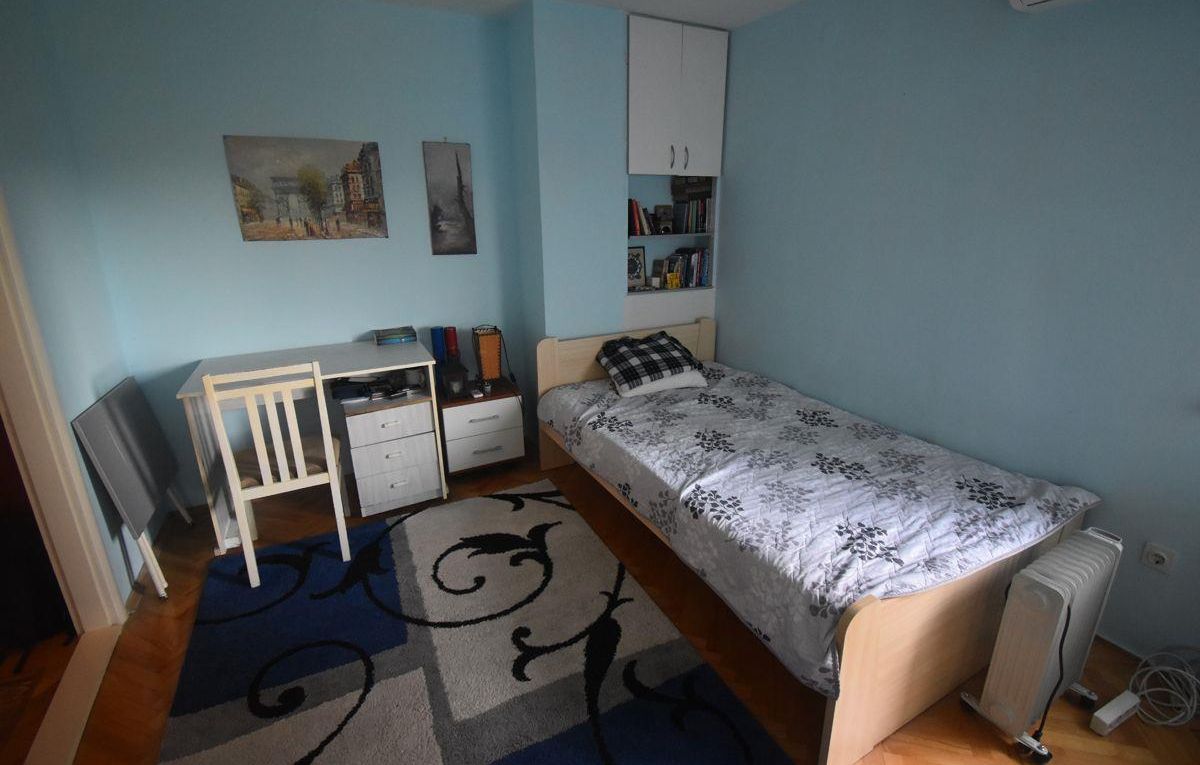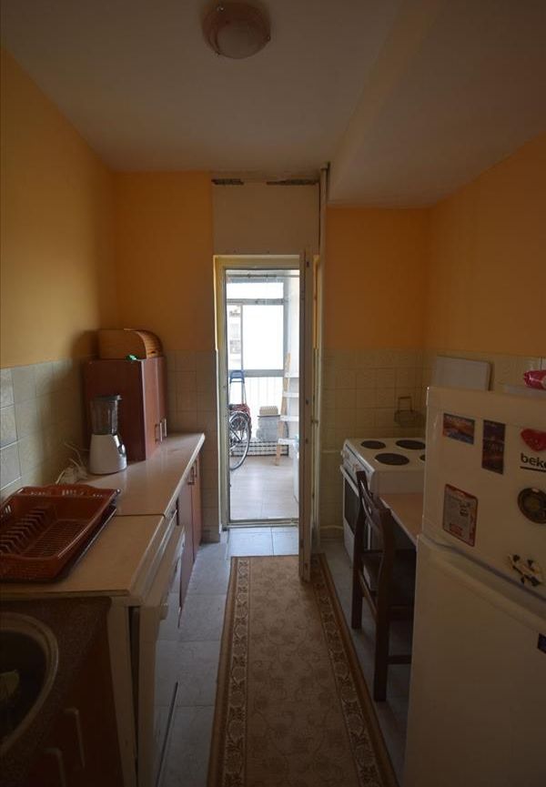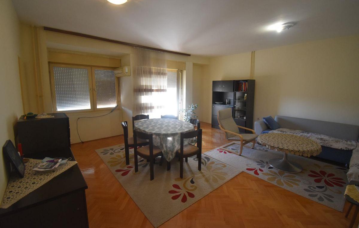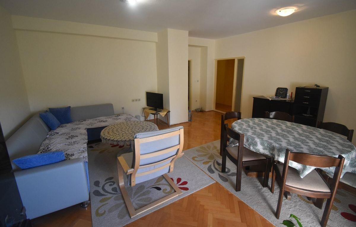 A renovated and fully furnished three-bedroom apartment with a total area of 80m² is available for rent in the Novo Lisiche neighborhood, located on the 3rd floor of a building with an elevator. The apartment includes a spacious living room, two separate bedrooms, a separate kitchen, two balconies, a bathroom, and an additional toilet. Each bedroom is equipped with a 120x200 cm bed, while the living room has a fixed-size sofa (not extendable). The apartment is equipped with air conditioning, electric panel heater, oil radiator, electric stove, washing machine, dishwasher, refrigerator, and a 32-inch LED TV. Heating is electric, the orientation is southeast, and there is access to more than three parking spots in the area. This property is ideal for families or tenants looking for a comfortable and well-equipped home in a quiet part of Aerodrom.