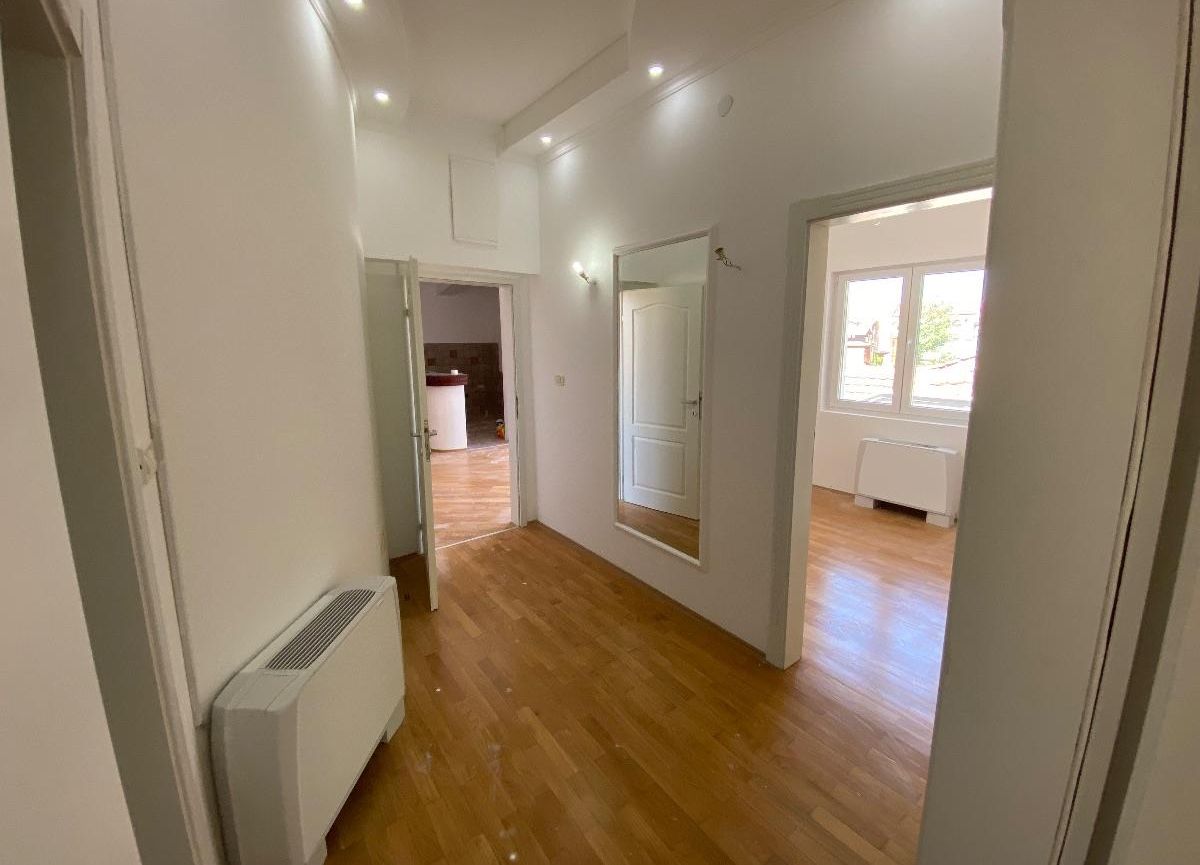 A spacious and renovated 114m² apartment is for sale, located on the 2nd floor of a small three-story building in the quiet and family-friendly neighborhood of Kozle. The apartment includes three bedrooms, a large living room, kitchen, hallway, two toilets, and three balconies with southwest orientation that offer abundant natural light. The building features a private yard suitable for relaxation or play, and the apartment comes with a designated parking space. Originally built in 2012 and fully renovated in 2023, this property is an excellent choice for families seeking a peaceful residence with quick access to the city center or for investment purposes.