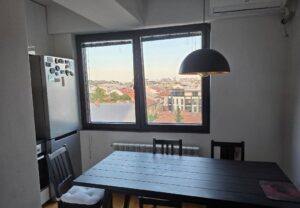 A fully furnished 32m² apartment is for sale in Karposh 1, located in a modern building from 2019 on Franklin Ruzvelt Street. The apartment is on the 6th floor with elevator access, has an east-facing orientation, and consists of a living area with kitchen, a semi-separated sleeping zone, and a bathroom. It is in excellent condition and ready to move in, making it an ideal choice for young individuals, students, or as an investment property for renting. The building provides multiple parking spaces and is close to essential amenities, schools, and public transportation.