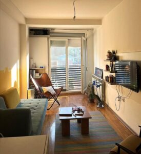 A new and fully furnished apartment of 39m² is for sale, located on Dimo Hadzi Dimov Street in Kisela Voda. Situated on the 4th floor in a building with an elevator, the apartment includes a living room, kitchen with dining area, one bedroom, and a bathroom. The building was constructed in 2017, with the first occupancy in 2018. It is southwest-oriented, offering ample natural light throughout the day. This compact and move-in-ready apartment is ideal for those looking for a modern home in a peaceful urban area.