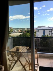 • Layout: living room with kitchen and dining area, bedroom, bathroom, terrace