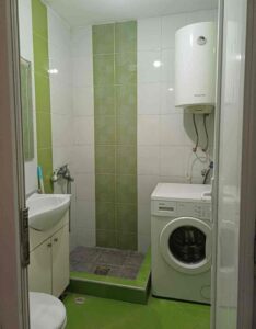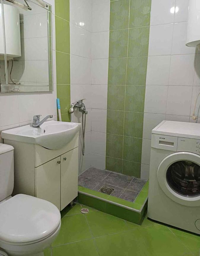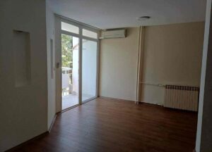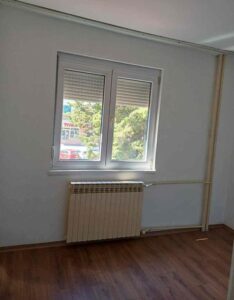 A renovated apartment of 70m² is for sale, located on the 1st floor of a building with an elevator in the Aerodrom neighborhood, right behind Capitol Mall. Renovated in 2015, the apartment features a spacious living room, kitchen, one bedroom, bathroom, and a southeast-facing balcony. It has central heating and comes with two parking spots and a basement storage area. The apartment is unfurnished, allowing future owners to customize the space to their preferences. Excellent location with all amenities nearby, including shopping centers, schools, and public transportation.