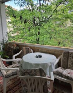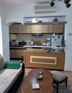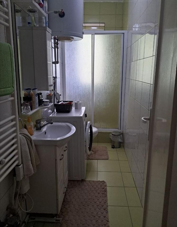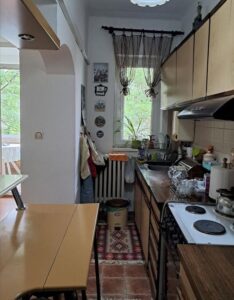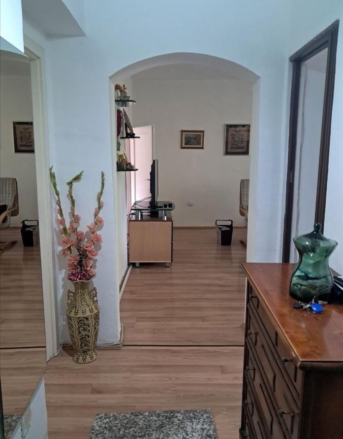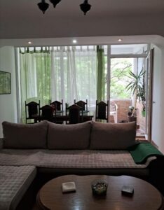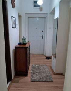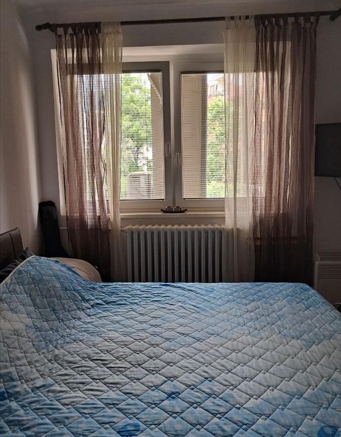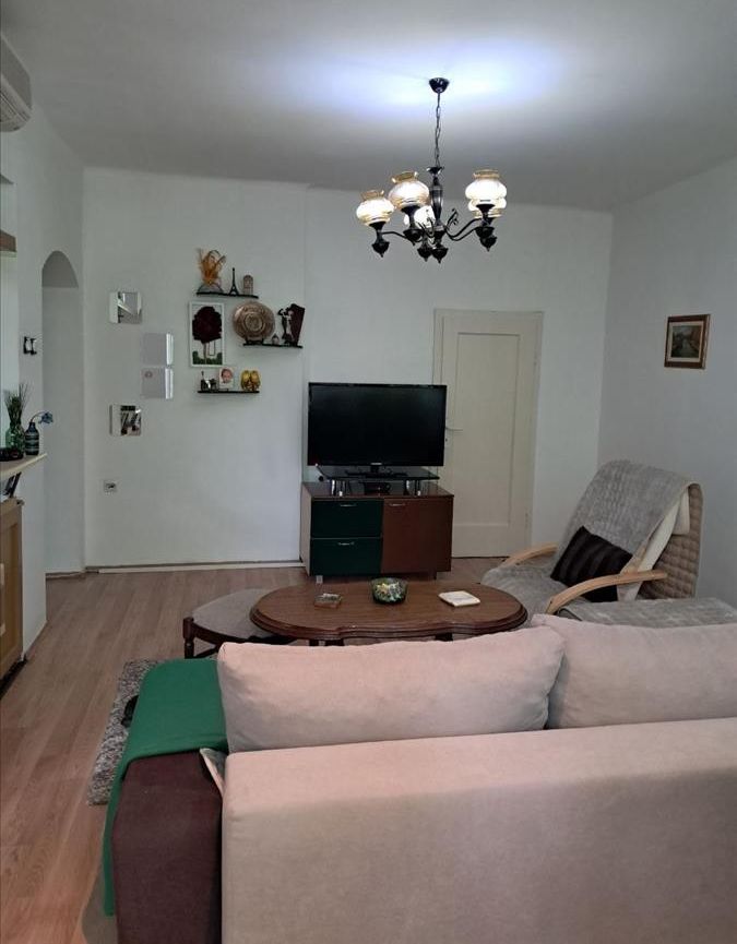 A renovated 71m² apartment is for sale in Karposh 1, located behind Simpo, on the 3rd floor of a building without an elevator. The layout includes a 26m² living room with kitchen, two spacious bedrooms (17m² and 14.5m²), a study room, bathroom, hallway, and two balconies measuring 5.5m² and 7m². With northeast and southwest orientation, the apartment enjoys excellent light and ventilation throughout the day. A 5m² basement storage space is also included. Located in a peaceful and green area, just a few minutes' walk from a kindergarten and primary school. There is also an option to retain part of the existing furniture.
