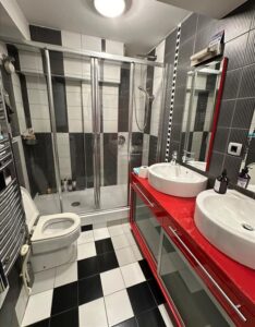 A fully furnished four-bedroom apartment of 82 m² is for sale in a quiet part of Kozle, on Mile Pop Jordanov Street, near Taftalidze and Kapishtec. Located on the 1st floor of a low-rise building (ground floor + 2 floors + attic), it has northeast orientation and an excellent layout: living room with access to a 4 m² loggia, separate kitchen, guest WC, master bedroom, two children's rooms, and a main bathroom. The balcony is accessible from the living room, master bedroom, and one of the children's rooms. The apartment is sold fully equipped with premium furniture (Natuzzi, solid wood), high-end appliances (Gorenje Pininfarina, Sony), Croatian oak parquet, and top-quality sanitary ware (Grohe, Roca). An ideal investment with a 5-year rental contract option at €500/month. Surrounded by greenery, it is within walking distance to parks, kindergartens, schools, faculties, Vero 2, and Beverly Hills Mall.