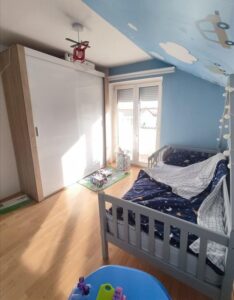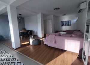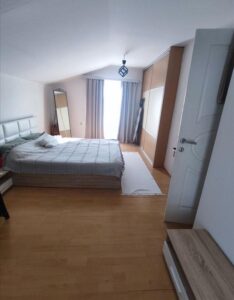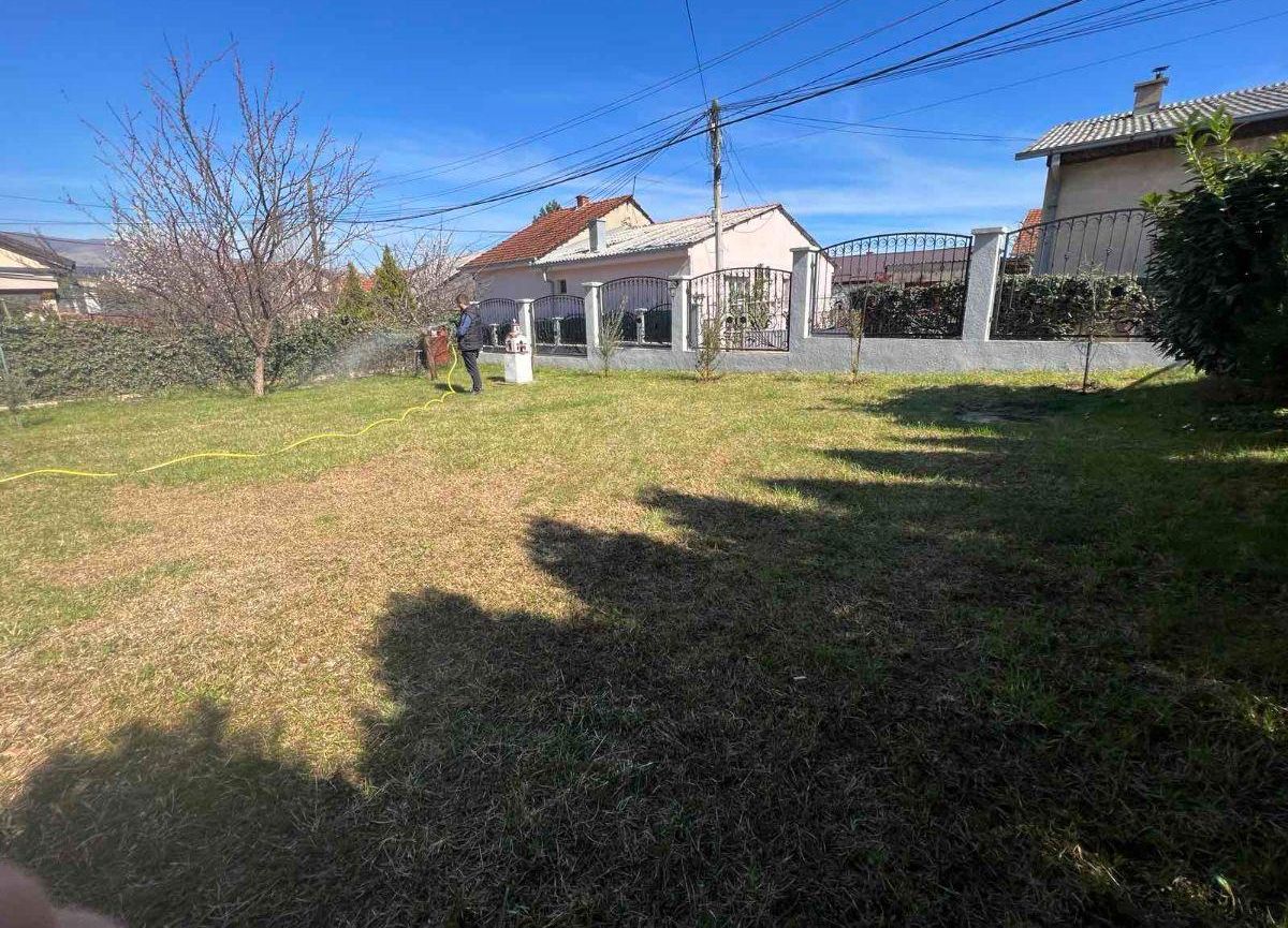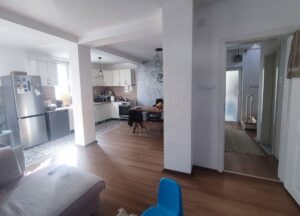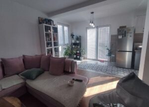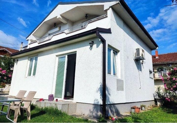 A renovated and energy-efficient detached house of 100 m² is for sale, located on two levels in the quiet neighborhood of Cento. The house is semi-furnished and features excellent thermal and sound insulation, video surveillance, and an alarm system. The first floor includes a spacious living room with dining area, kitchen, bathroom, and hallway, while the second floor consists of two bedrooms, another bathroom, and two balconies. It sits on a 500 m² plot, most of which is a green yard with a lawn, various fruit trees, a well, a built summerhouse, and a decorative wrought-iron fence. The property includes a solid-built garage of 26 m² and additional parking space for three vehicles. The legal documentation is fully arranged and ownership is clean.