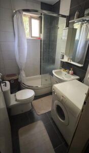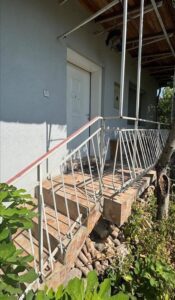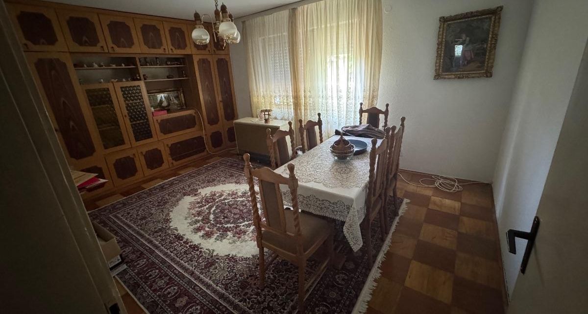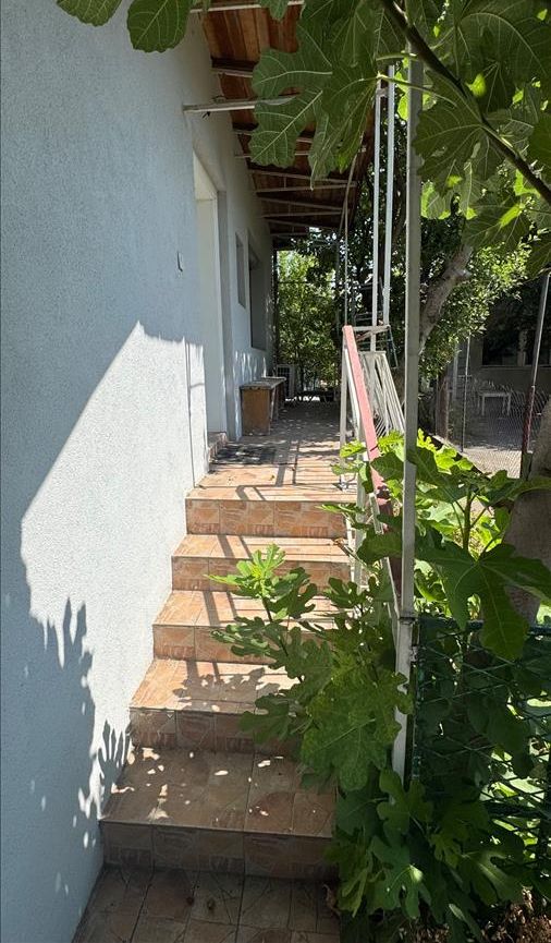 A renovated detached family house of 90m² is for sale in the Lisiche neighborhood, located near the railway line. The house features an elevated ground floor layout and includes a living room, dining area, kitchen, bedroom, one bathroom, basement, garage, and a summer kitchen. It sits on a 165m² plot with two balconies and is oriented southwest. The property was fully renovated in 2018 and is sold furnished, with one parking space provided within the premises.