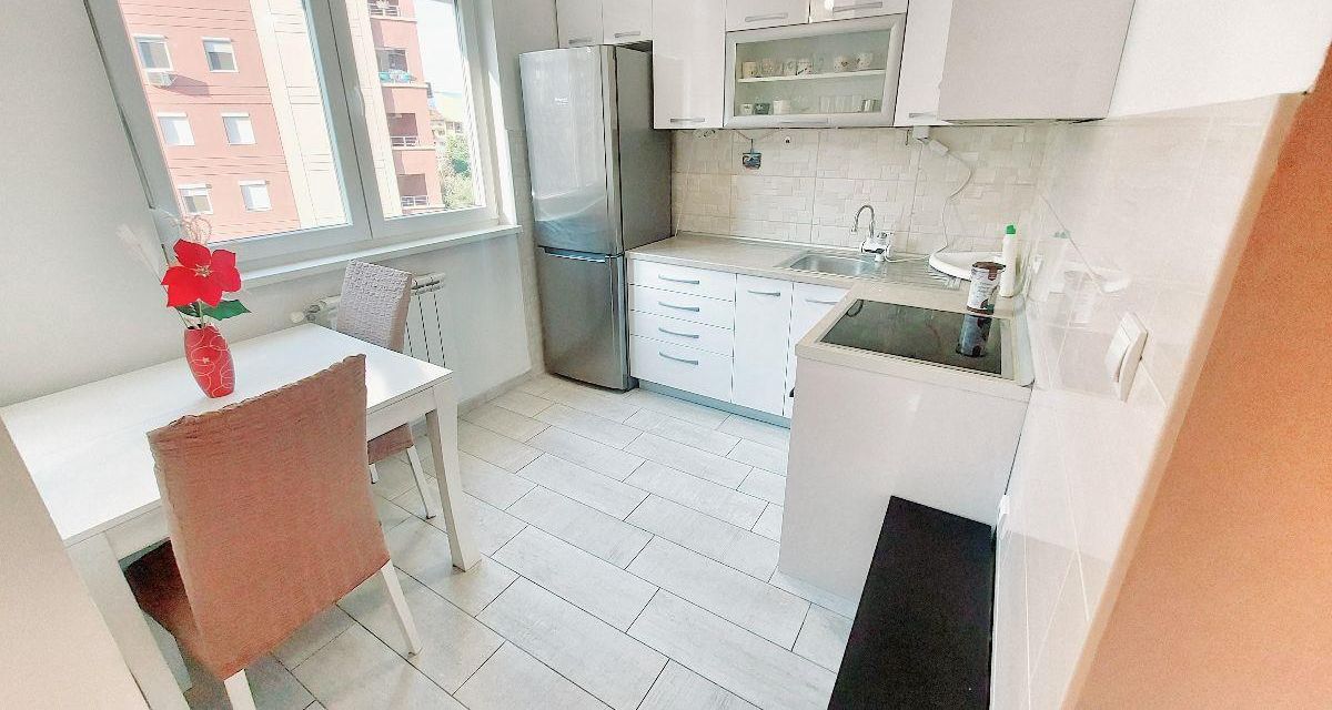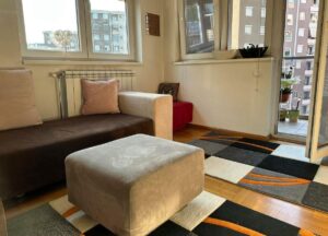 A new and fully furnished 33m² studio apartment is for sale in Aerodrom, located opposite the Equilibrium complex in the Ofiskom building, near Jane Sandanski Polyclinic. Situated on the 5th floor of a 10-story building with an elevator, the apartment is southwest oriented and includes a living room with a modern FEYDOM modular sofa, kitchen, bathroom, and a balcony. It features central heating and an inverter air conditioner. This functional property is an excellent choice for individuals or couples seeking a modern home in one of Skopje’s most convenient neighborhoods.