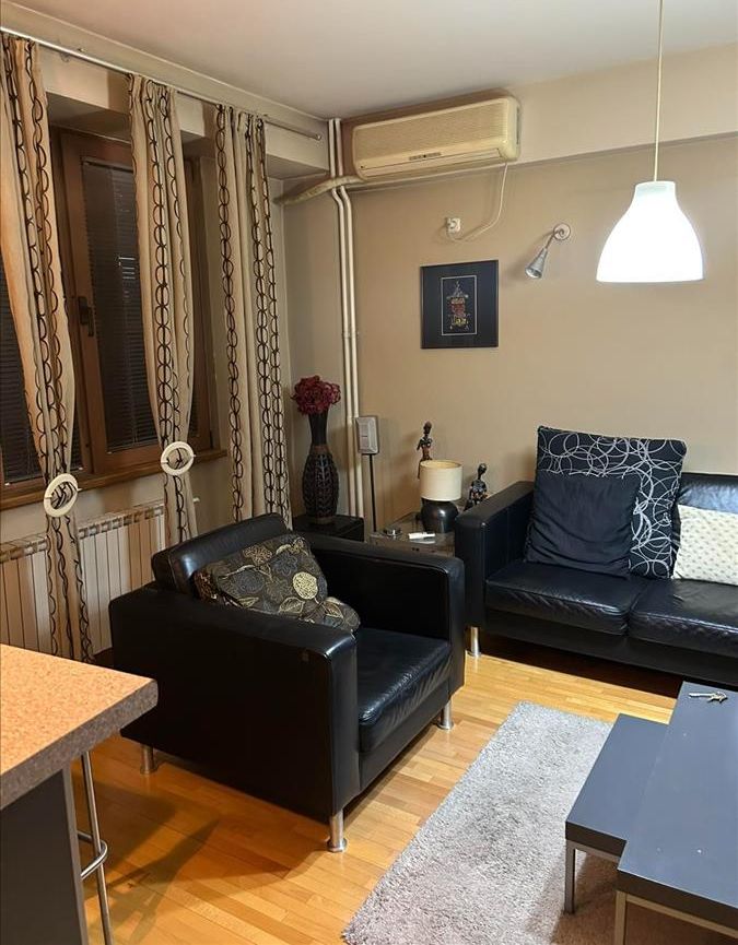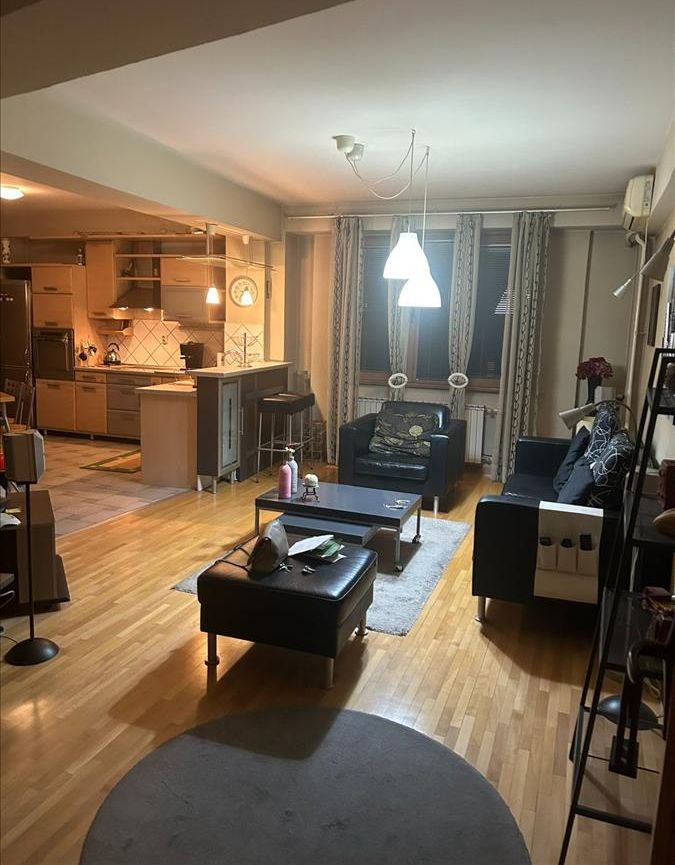Се издава прострен и целосно наместен стан со површина од 96 м², сместен во самиот Центар на Скопје, на улица Максим Горки, во зграда спроти кафулето Mr. Jack. Станот е на втор кат во зграда со лифт и има одличен распоред: две спални соби, пространа дневна со трпезарија и кујна, две модерни купатила и балкон со пристап од кујната и спалната соба. Греењето е централно парно, а како дополнителен бенефит се вклучени и сопствено гаражно место и дополнителен паркинг. Станот е реновиран во 2023 година и обезбедува комфор, функционалност и квалитетен живот во една од најбараните локации во Скопје, со сите потребни содржини во непосредна близина.