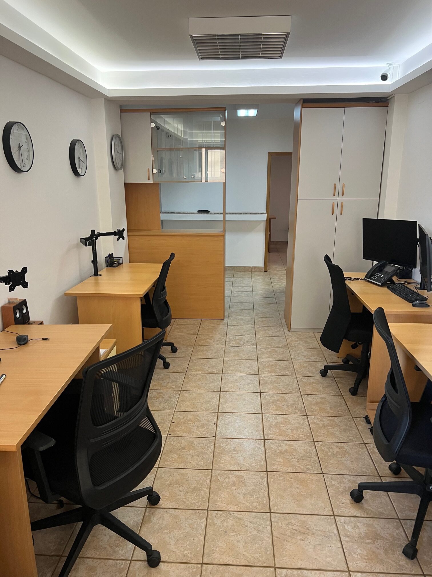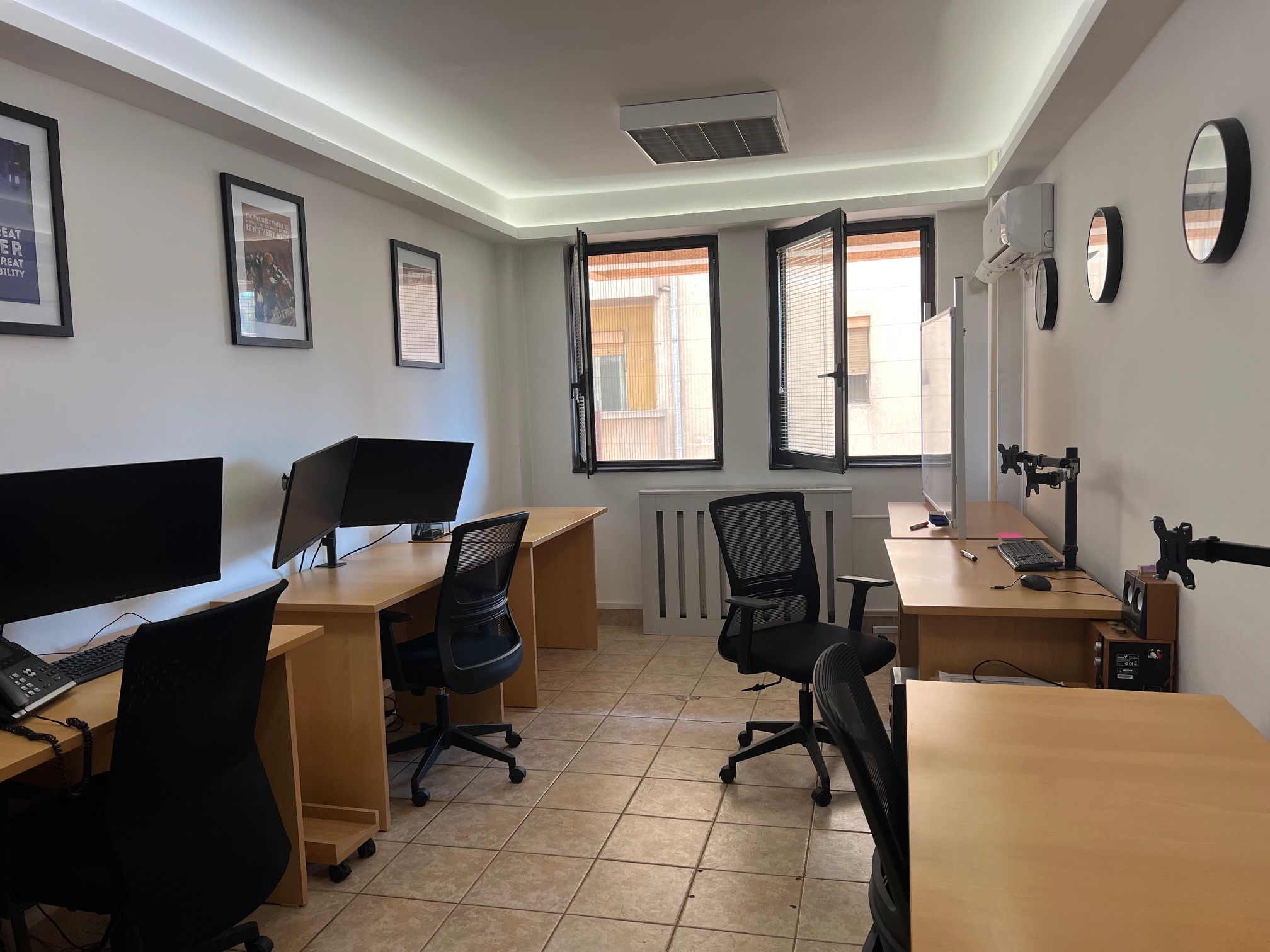 8 работни позиции со бироа, ергономски канцелариски столици и интернет приклучоци